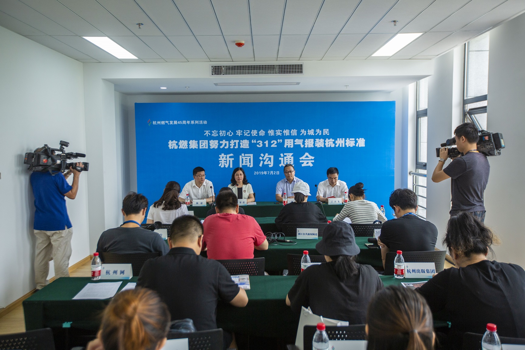 杭燃集团历经45年的发展,始终将“安全责任重于泰山、服务百姓是天职”的公用企业社会责任背负在肩,砥砺前行。2019年7月2日,杭燃集团结合45周年系列主题活动举办“杭燃云栖小镇(转塘)综合服务厅启用暨打造‘312’燃气报装杭州标准”新闻发布会,努力为用户提供更安全、更方便、更优质、更具体验感的燃气服务。市城管委市场处处长刘建龙、转塘街道办事处主任郎国伟、市城投集团应急指挥部副部长吴再腾、参建单位杭州华野建设工程有限公司副总经理罗杰、转塘街道用户代表孙校校和社区代表俞杏仙受邀出席,集团领导芦俊、卢智宏、金富根、俞磊、王忠平、朱琴君、俞峻及办公室、建设发展部、综合管理部负责人,杭天公司经营班子及相关单位负责人,服务厅全体进驻人员、特勤队等共计80余人参加。12家省、市媒体现场报道。本次发布会由集团党委副书记俞磊主持,副总经理朱琴君作新闻发布。