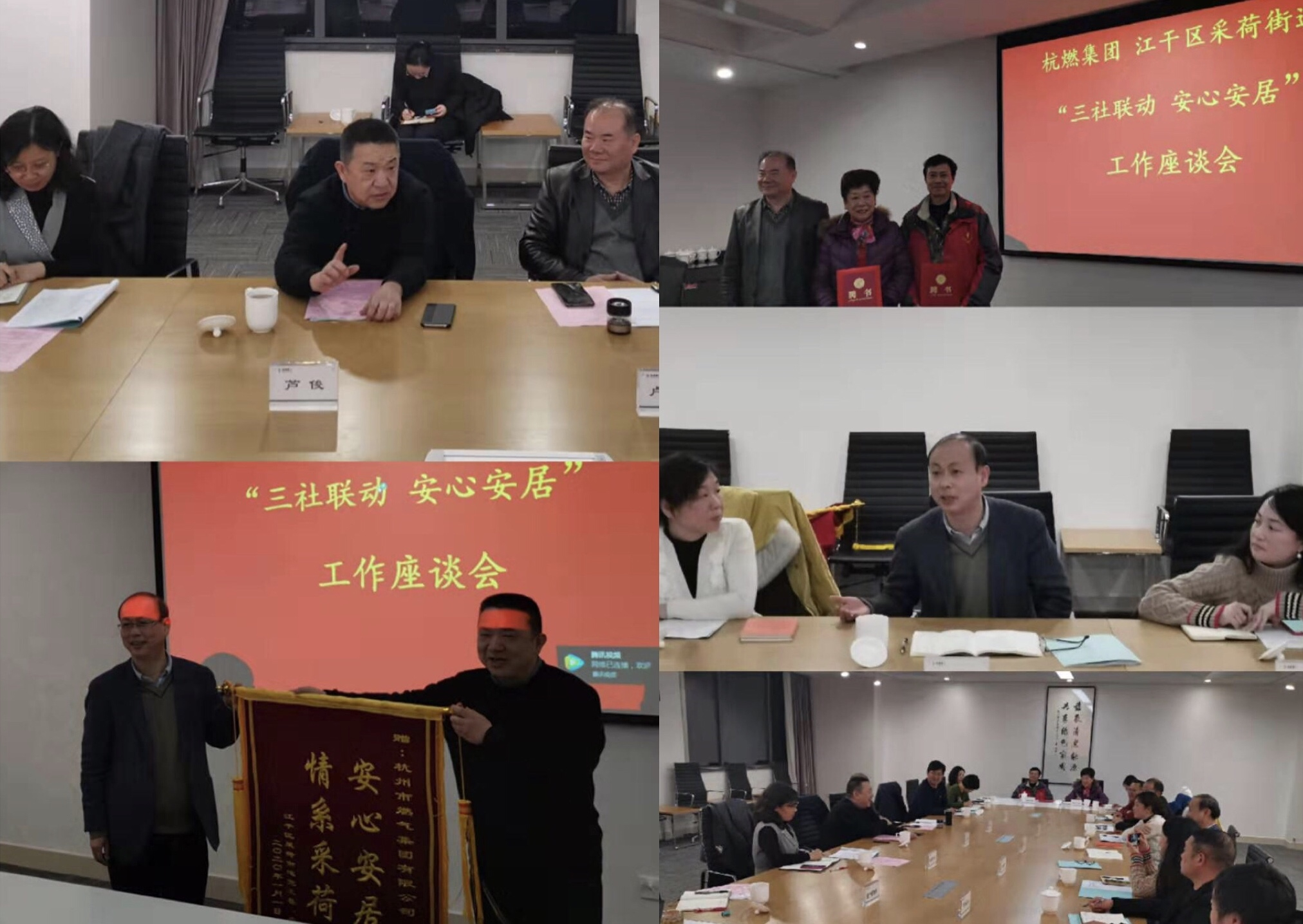 1月10日下午,杭燃集团在杭州绿色能源体验中心召开 “三社联动 安心安居”工作座谈会。杭燃集团党委书记、董事长芦俊,党委副书记、总经理卢智宏,党委副书记、副总经理朱琴君,集团综合部、杭天公司、服务发展公司有关负责人,采荷街道党工委书记范国良、街道办事处副主任钱芳、江干区社区治理科科长卢忠明、红菱、芙蓉两个社区书记,采荷街道社区社会组织服务中心负责人董利民,杭城首支“三三安居”燃气安全社区志愿者服务队中优秀代表徐慧芬、周永华等应邀参加座谈。座谈会由朱琴君主持。