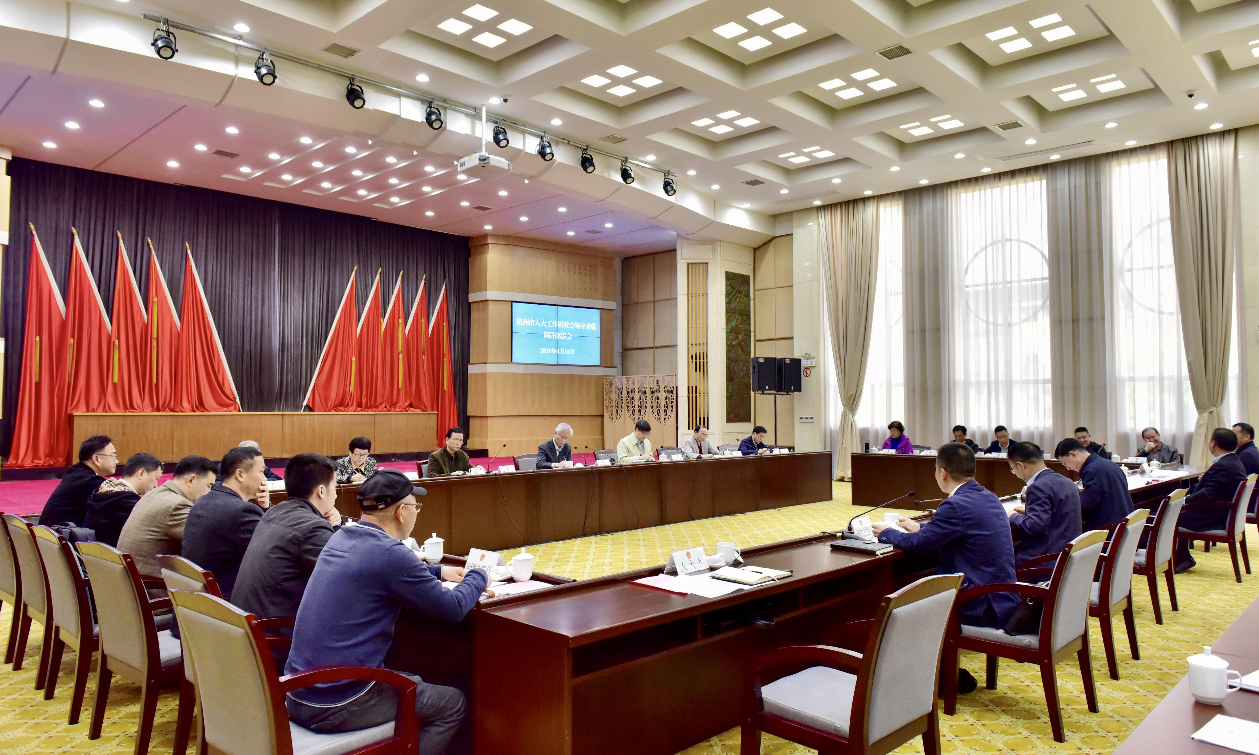 2021年4月16日上午,市十二届人大常委会党组副书记、副主任、人大研究会会长朱金坤,市人大常委会办公厅巡视员、研究会秘书长张永谊,市人大常委会办公厅原巡视员钟文强,市人大常委会民宗侨外事工委原主任袁建进,市十二届人大常委会委员杨志毅,临安市十五届人大常委会主任、理事吴苗强,市人大常委会办公厅原副主任、理事彭启政,市人大常委会办公厅信访办原主任林丽雅,临安市十五届人大常委会副主任杨为伟,市人大工作研究会办公室副主任刘瑜坤立等立法调研组一行在临安区开展《杭州市燃气管理条例(修改)》的立法工作调研。临安区委副书记、区人大常委会党组书记、主任杨泽伟,区委常委陈立群,区人大常委会副主任周杰,区人大城建环保工委、区人大办公室、区城市管理局、临安区燃气企业负责人,杭燃集团领导芦俊、卢智宏和办公室、临安杭燃负责人参加。