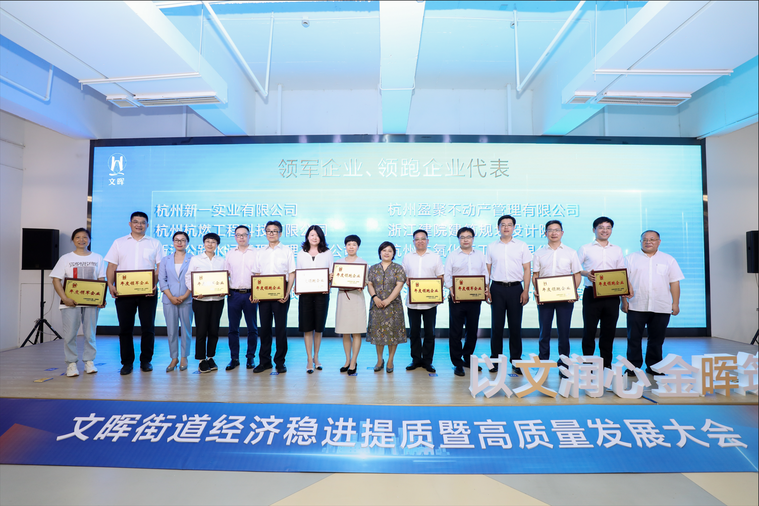 7月12日下午,“以文润心,金晖筑梦”拱墅区文晖街道经济稳进提质暨高质量发展大会在兔狗创新大厦召开,会上,杭州杭燃工程科技有限公司被授予“文晖街道2021年度高质量发展领军企业”荣誉,公司党支部书记、总经理冯其栋受邀出席并上台领奖。