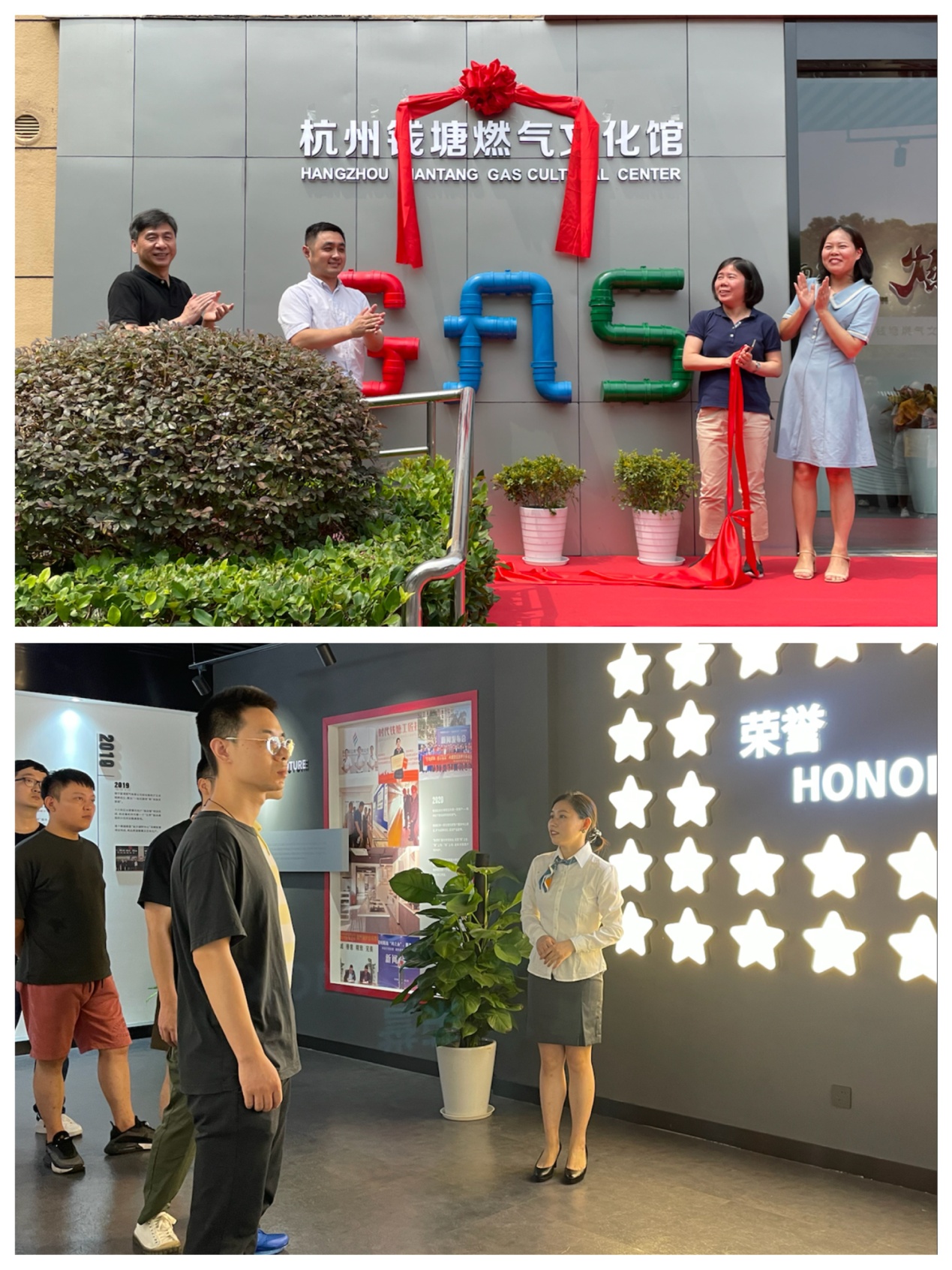 8月26日上午,钱江公司举行杭州钱塘燃气文化馆开馆仪式,杭燃集团党委委员、纪委书记赵伟儿、钱江公司总经理苏忠杰、副总经理俞勤峰、何香共同揭牌,各部门负责人、职工代表齐聚揭牌仪式现场,共同见证这一激动人心的时刻。杭州一台、杭州二台、杭州日报、钱江晚报、杭州网、钱塘新区报应邀参加。揭牌仪式结束,公司技能大师领衔人殷一珍带领媒体朋友及新员工进行参观。