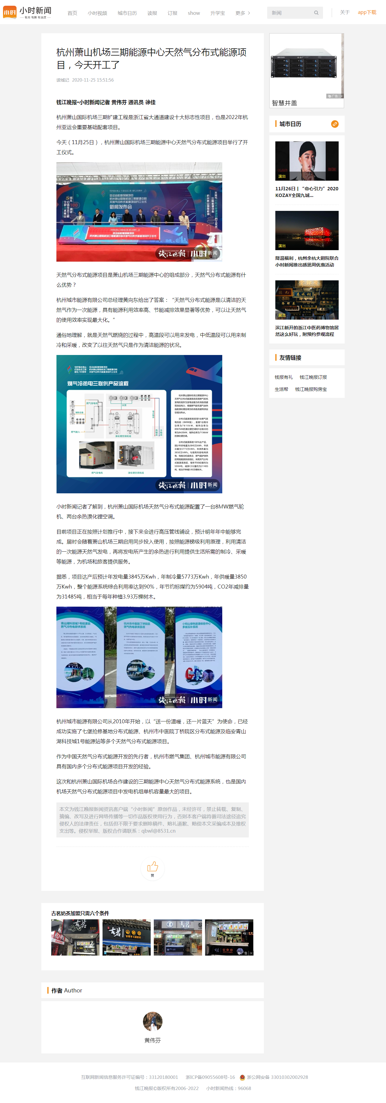 今天(11月25日),杭州萧山国际机场三期能源中心天然气分布式能源项目举行了开工仪式。