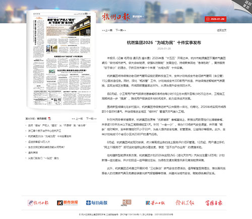 本报讯(记者 毛雨佳 通讯员 潘长勇)2026年是“十五五”开局之年,杭州市能源集团下属燃气集团紧扣“做优城市燃气、做大综合能源、做强科技赋能”发展定位,持续聚焦百姓“急难愁盼”,秉持服务“甘于微小”的理念,于昨日发布第十个年度“为城为民”十件实事。